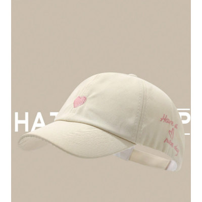 Women's Heart Embroidery Ponytail Hole Top Baseball Cap, Versatile Sun Visor Hat For Summer