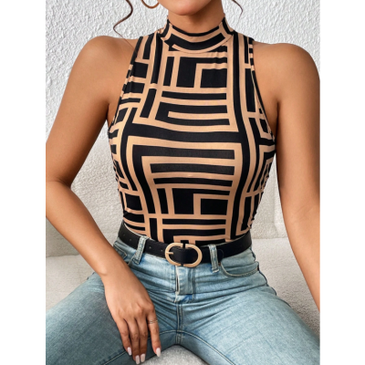Geo Print Mock Neck Tank Top